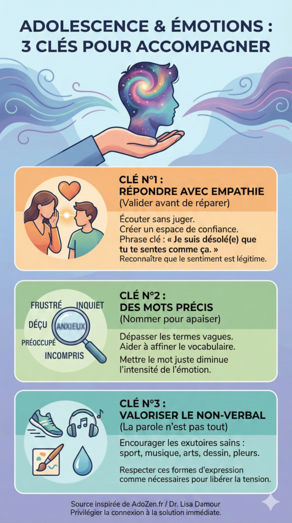 Lorsqu’un adolescent prend sur lui pour partager ses sentiments, la première réaction de l’adulte est cruciale. Avant de chercher des solutions ou de minimiser la situation, la priorité est d’offrir de la compassion.