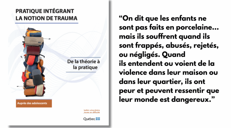 Pour répondre à ce défi, le CIUSSS du Centre-Sud-de-l’Île-de-Montréal et l’Institut universitaire Jeunes en difficulté ont créé la trousse de soutien « Pratique intégrant la notion de trauma auprès des adolescents ». Son objectif : donner aux professionnels et aux parents des outils concrets pour comprendre, repérer et accompagner les jeunes touchés par le trauma, tout en évitant d’aggraver leur détresse.