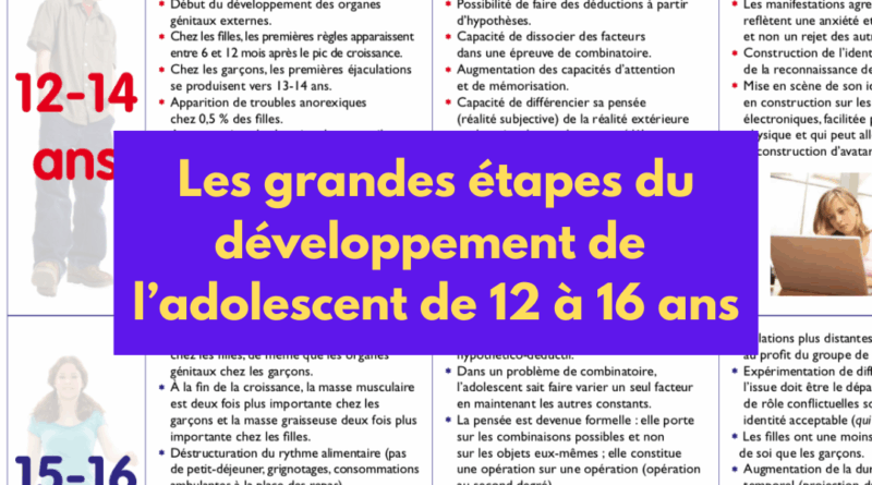 Read MoreLe site jeunesprofs.com propose un interessant tableau sur les grandes étapes du développement de l’adolescent de 12 à 16 ans