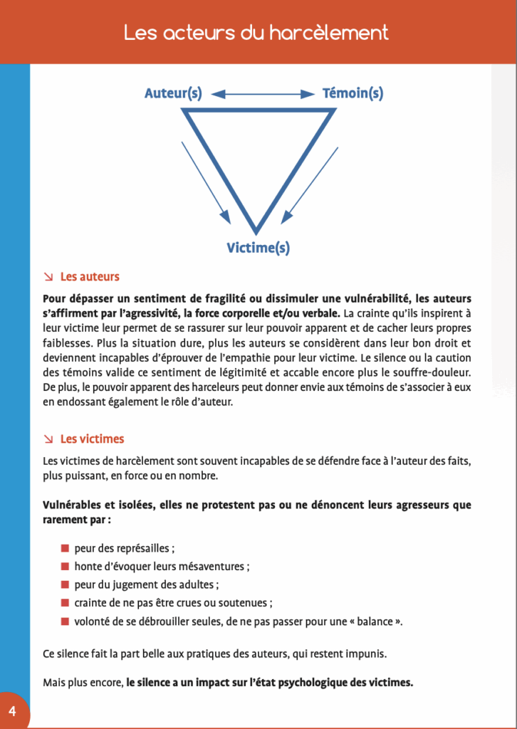 Le harcèlement se déroule généralement loin des regards adultes, mais devant d’autres élèves. Les victimes, par peur ou par honte, parlent rarement de ce qu’elles vivent. Les changements de comportement sont parfois interprétés à tort comme de la timidité, une crise d’adolescence ou un simple manque de sociabilité.