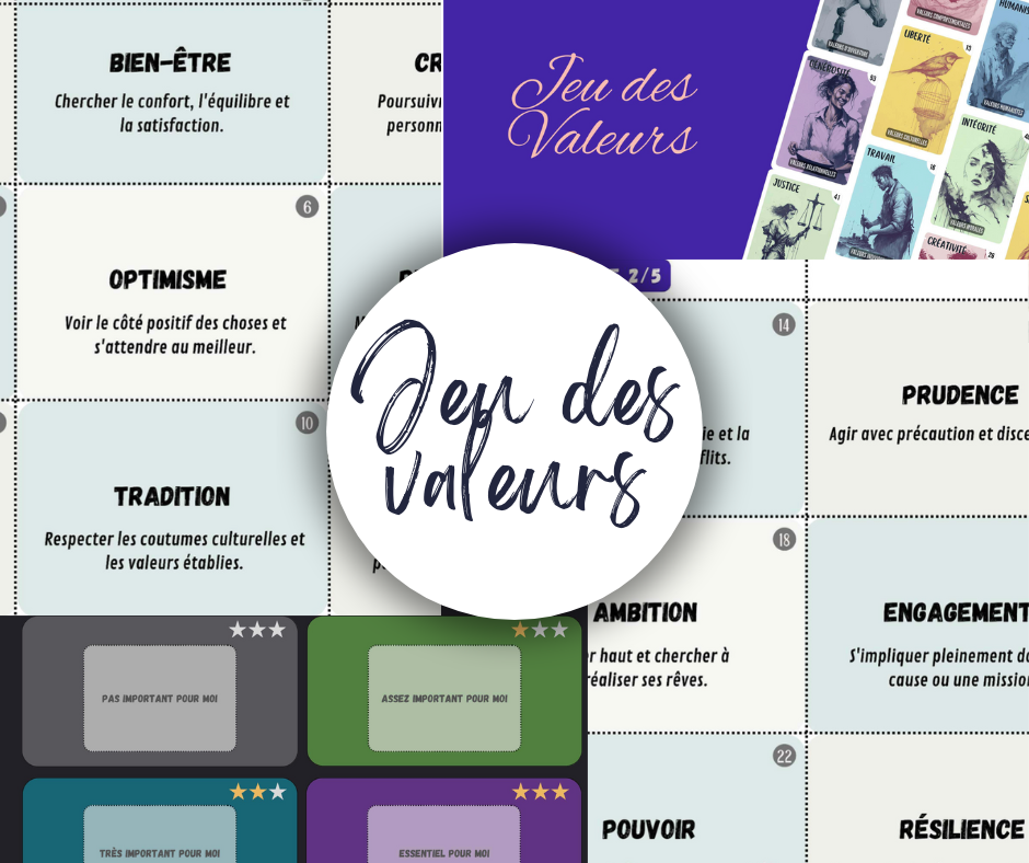 Clarifier ses valeurs est une étape essentielle pour mieux se connaître, donner du sens à ses choix et comprendre ce qui guide nos comportements. Dans cette perspective, le Jeu des Valeurs est un outil simple et puissant, mis à disposition gratuitement, qui invite à une réflexion personnelle et collective autour de ce qui est réellement important pour chacun.