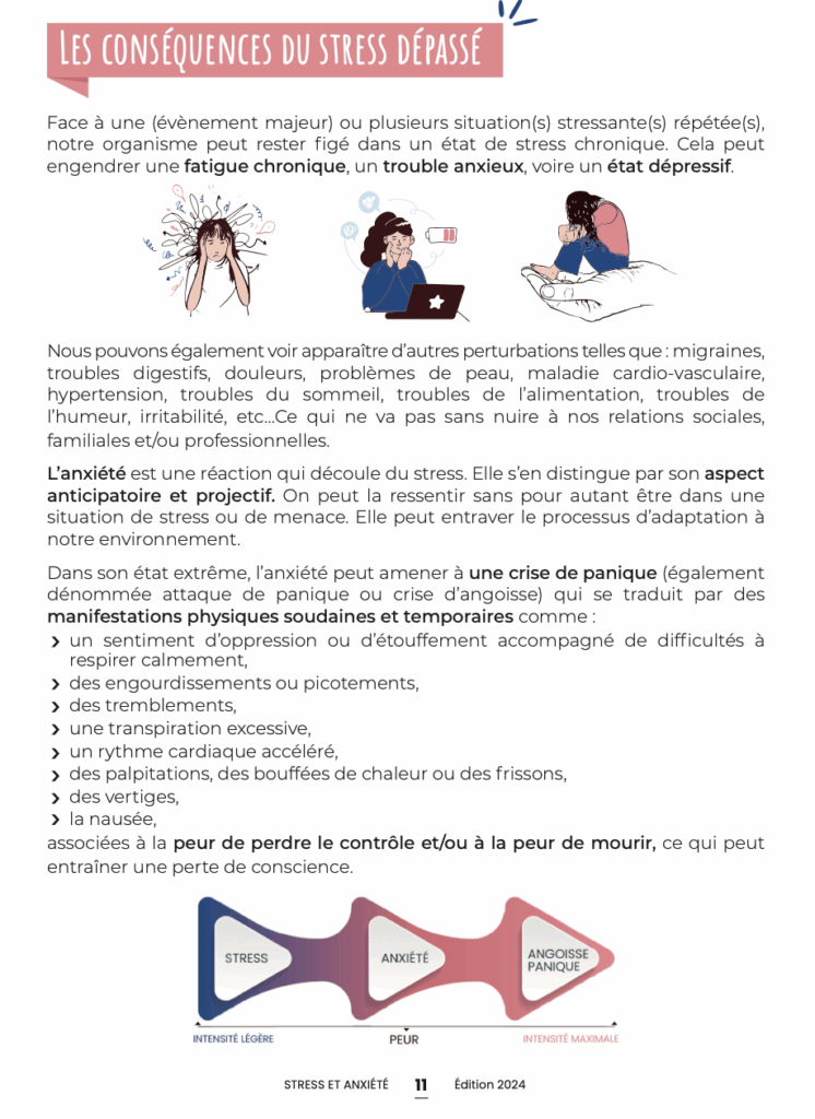 Le stress est une réaction normale face à une situation nouvelle ou perçue comme menaçante. Lorsqu’il devient chronique, il peut entraîner fatigue, troubles du sommeil, difficultés de concentration, voire anxiété ou crises de panique.