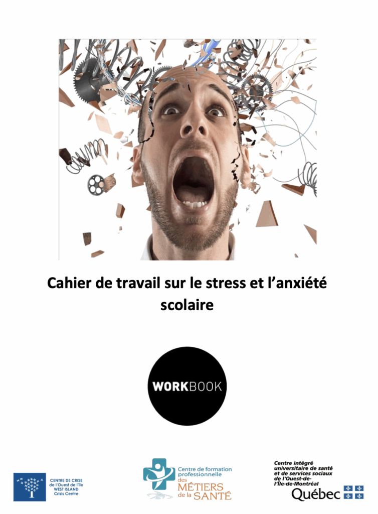 Le CIUSSS de l’Ouest-de-l’Île-de-Montréal (Québec) a créé un cahier de travail gratuit pour t’aider à comprendre ce que tu ressens et à trouver des outils concrets pour te sentir mieux à l’école.
